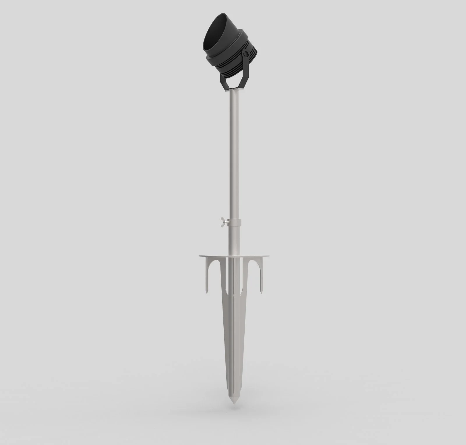 Des mâts inox télescopiques sur mesure, résistants aux intempéries et stables une fois ancrés en pleine terre. Leur design sobre et élégant assure une parfaite intégration paysagère, tandis que le système télescopique permet d’adapter facilement la hauteur et l’orientation des projecteurs au fil du temps.